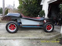 so that the seat height could be checked . The raised height was fantastic just what I needed so that a soft top could be fabricated that would not need a head hole for my head to poke through. A shopping list was then made to acquire longer bolts some and a new 9mm drill so that the body work could be fixed back onto the chassis. As I had taken the body work off I felt that it was in need of a clean up and thought it would be a good idea to